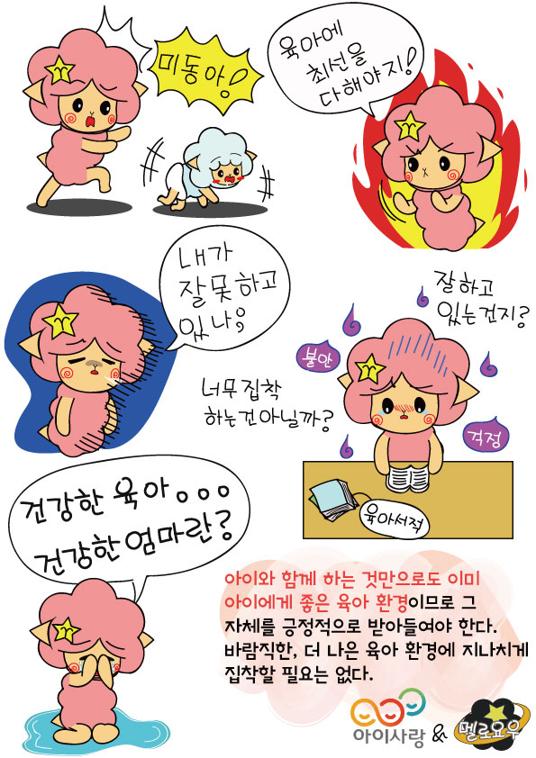 건강한 육아를 위해 최선을 다하는 것은 좋지만 너무 민감한 반응은 스트레스가 되어, 오히려 아이에게 부정적인 영향을 끼칠 수 있는데요. 중요한 건 부모 스스로의 긍정적인 인정이 필요하다는 것!